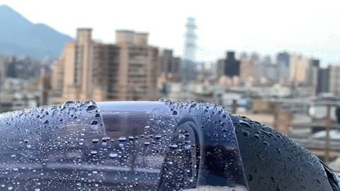 市售防雨膜幾乎全為親水式,水滴在親水膜上會生成薄博一層水膜,導致影像扭曲,並乾燥後生成水痕、水垢。這些,CA160 都不會發生!
