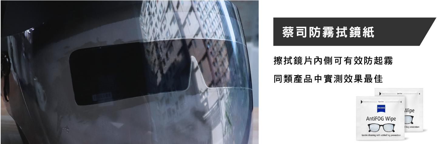 從問卷調查中可以發現,許多人都有「安全帽內側起霧導致視線受阻」的困擾。科學研選聽到了!因此找了市面上各種防霧產品來測試,最後發現蔡司出的防霧擦拭紙不但效果好,使用上也方便,因此雖然單價高,還是決定納入產品包裝成為贈品。