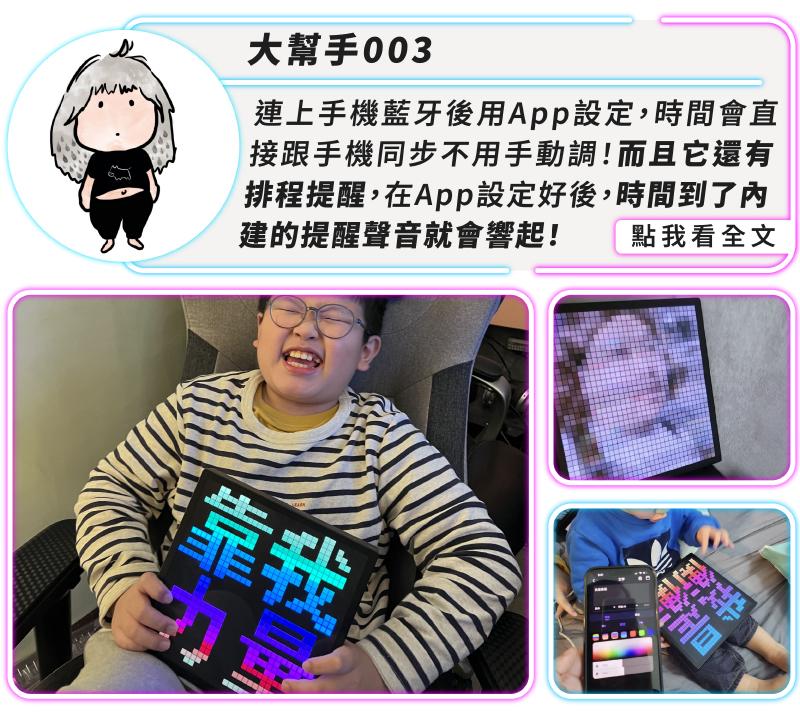 不同於普通時鐘,像素精靈的數位時鐘可與手機的時間同步,非常準確無需手動調整。可根據喜好選擇時鐘樣式,只要在報時功能中設定好工作或假期排程,時間到將會收到內建蜂鳴器的提醒,就像擁有個人生活助手!