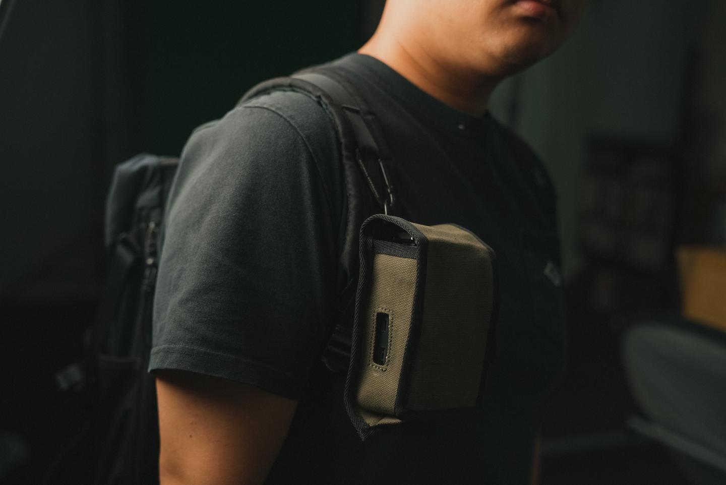 後方配有魔鬼氈+D型環(掛勾需自行購買)方便外掛。