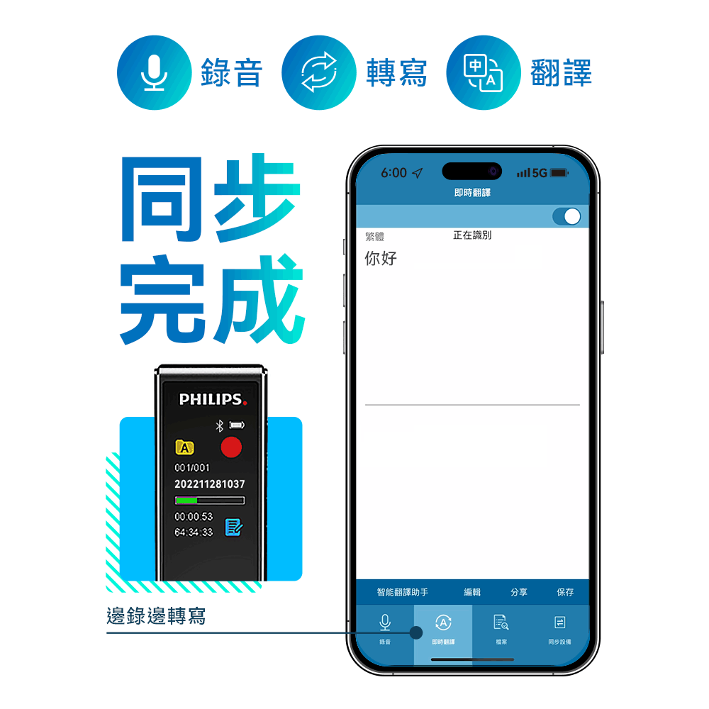 - 離線錄音|獨立使用,連接APP同步後可轉寫