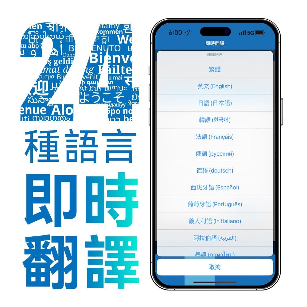 選取即時翻譯,即可將逐字稿翻譯成各種語言,繁體中文、英語、日文、韓文、泰文、越南文、俄語、粵語、西班牙文、法語、德文、葡萄牙文、義大利文、希臘文、丹麥文、瑞典文、荷蘭文、波蘭文、芬蘭文、捷克文、羅馬尼亞文、阿拉伯文、匈牙利文、愛沙尼亞文。