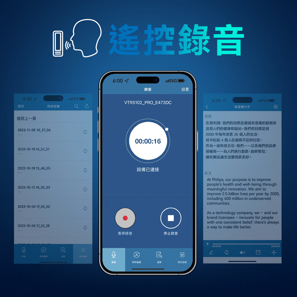下載 VTR TW APP 藍芽連線即可,輕鬆讀寫錄音內容,即時翻譯功能超級方便!