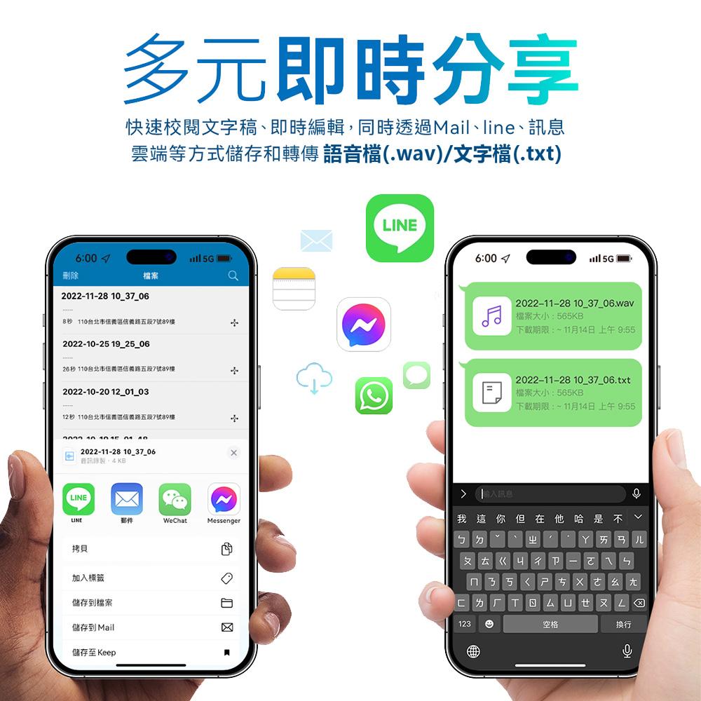 - 即時分享|文字、語音檔皆可傳,多人共享