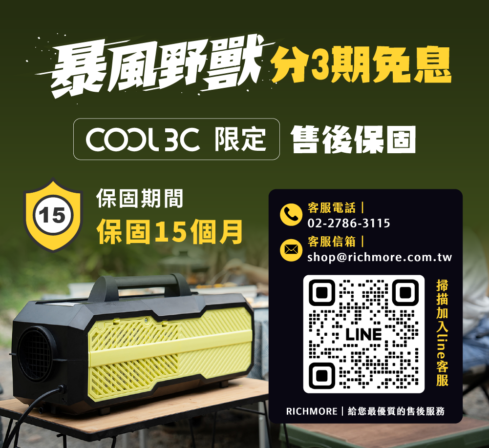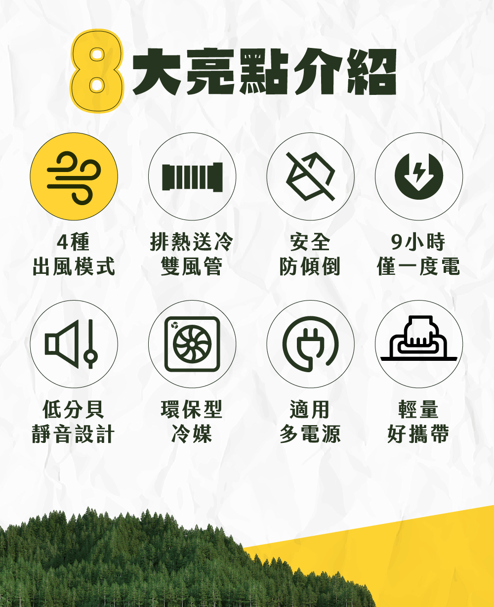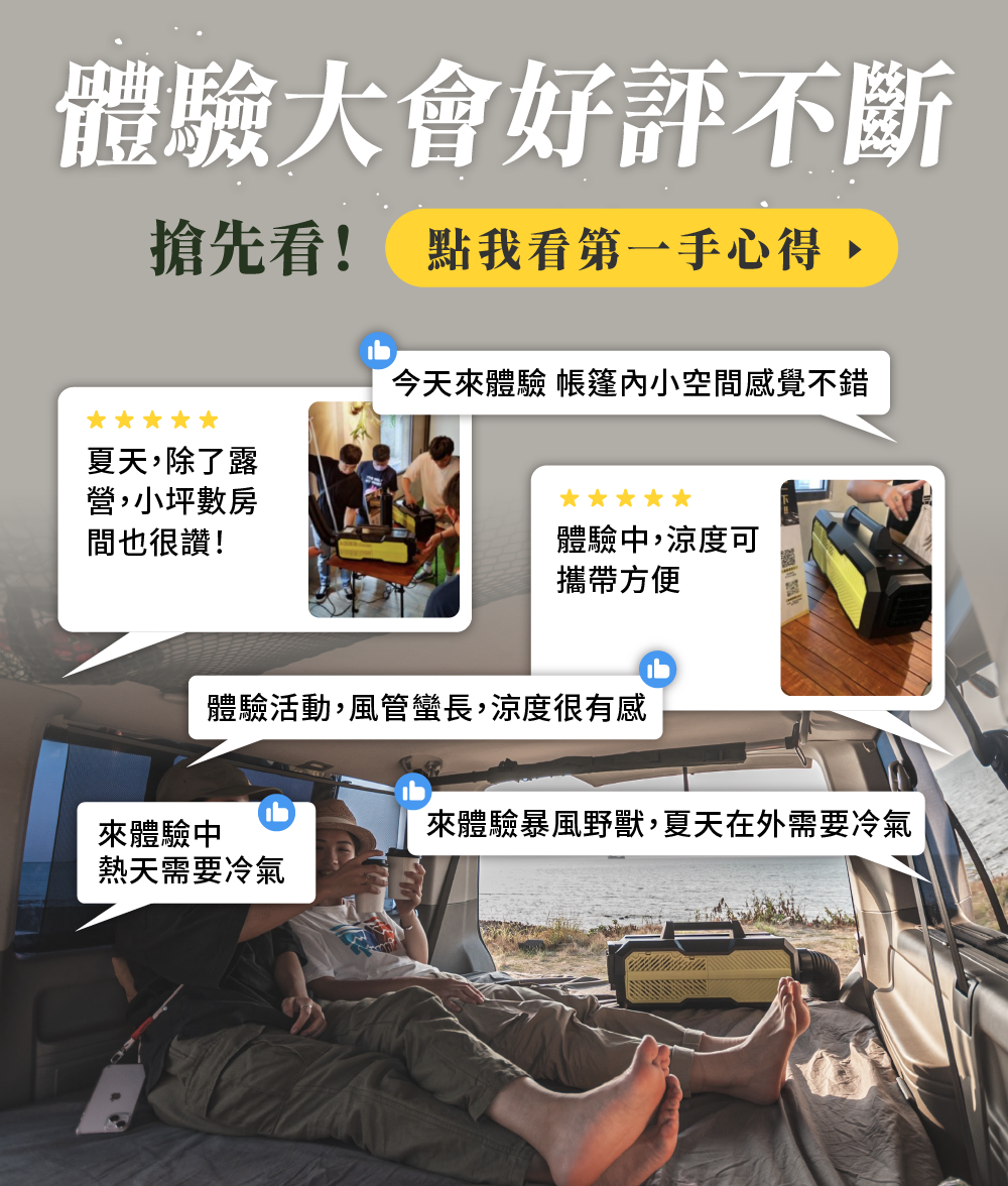 夏日清涼露營、車露的好幫手!探索自然的神隊友,環保型冷媒低分貝設計,使用起來順手又舒適,輕量好攜帶,15個月安心保固。