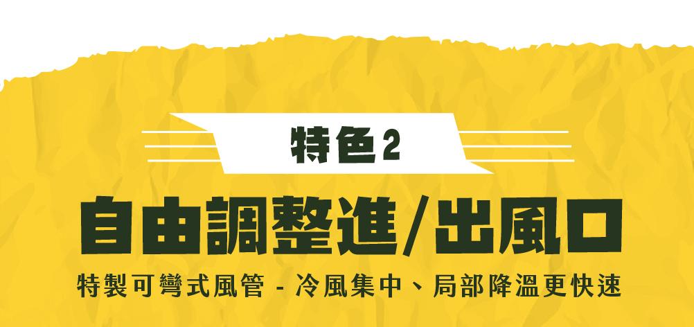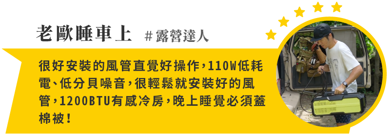簡單的組裝步驟,輕鬆安裝便可清涼一夏!特製可彎式風管讓您隨處都好安裝,車露有效將熱氣排出、露營時集中風力。