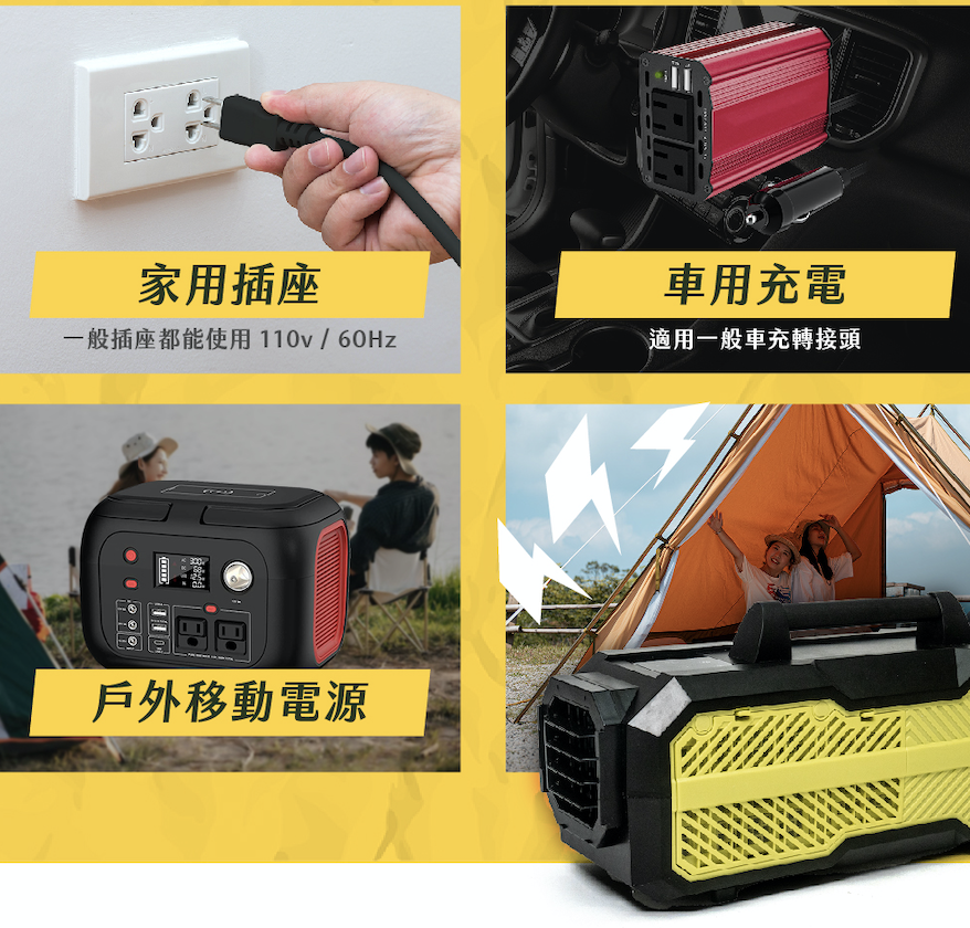 不論是家用插座、戶外電源,甚至是車用充電都可以使用!選擇多樣不怕沒有涼風吹。