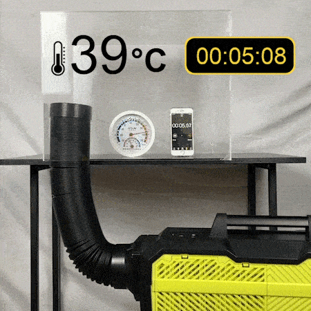 功效實測,將溫度計放於溫度38°C的壓克力罩中,啟動後暴風野獸後,最終降到約25°C。