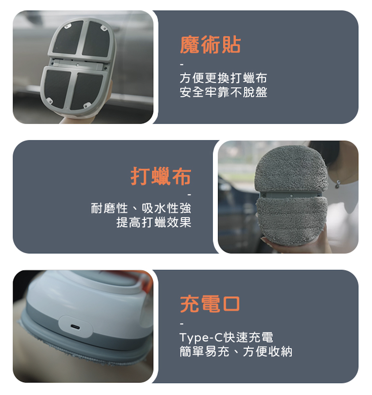 使用type-c 即可充電,40分鐘超長續航,不必擔心打蠟到一半沒有電,各種車型都適合。